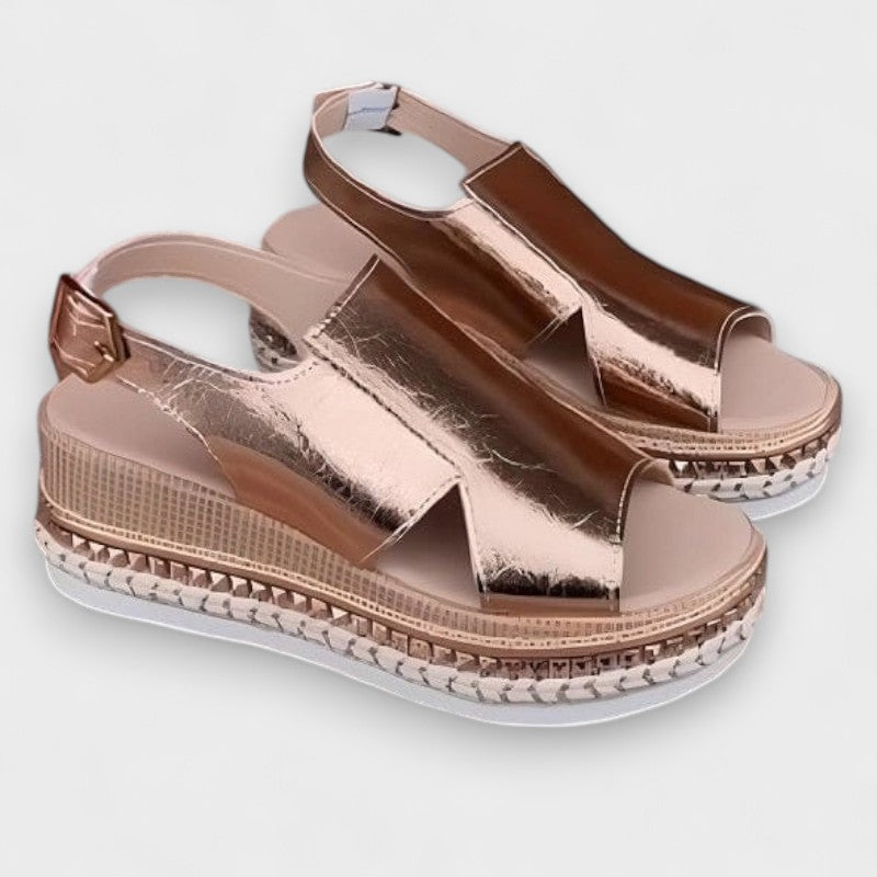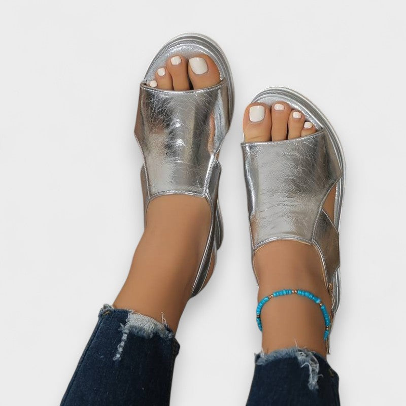 Diseñadas para cuidar tus pies sin renunciar al estilo, las sandalias Palma combinan una suela ortopédica contorneada con un brillo sutil que eleva cualquier look.